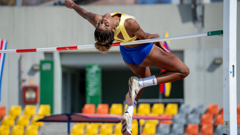 Professional high jump competition event.
